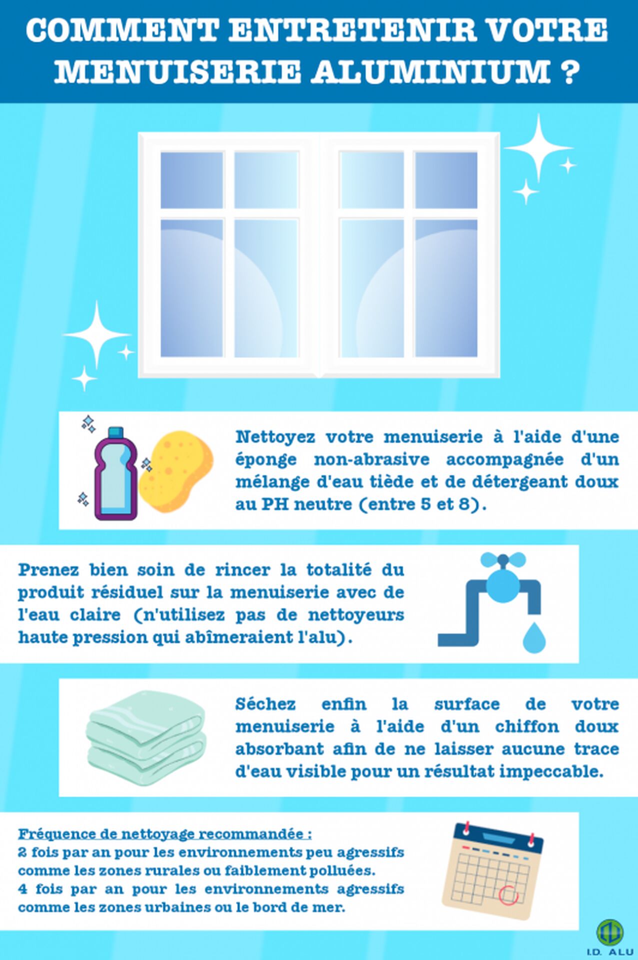 Un bon entretien permet de préserver l’esthétique et la durée de vie de vos menuiseries. Bonne nouvelle : l’alu et le PVC sont des matériaux faciles à entretenir.